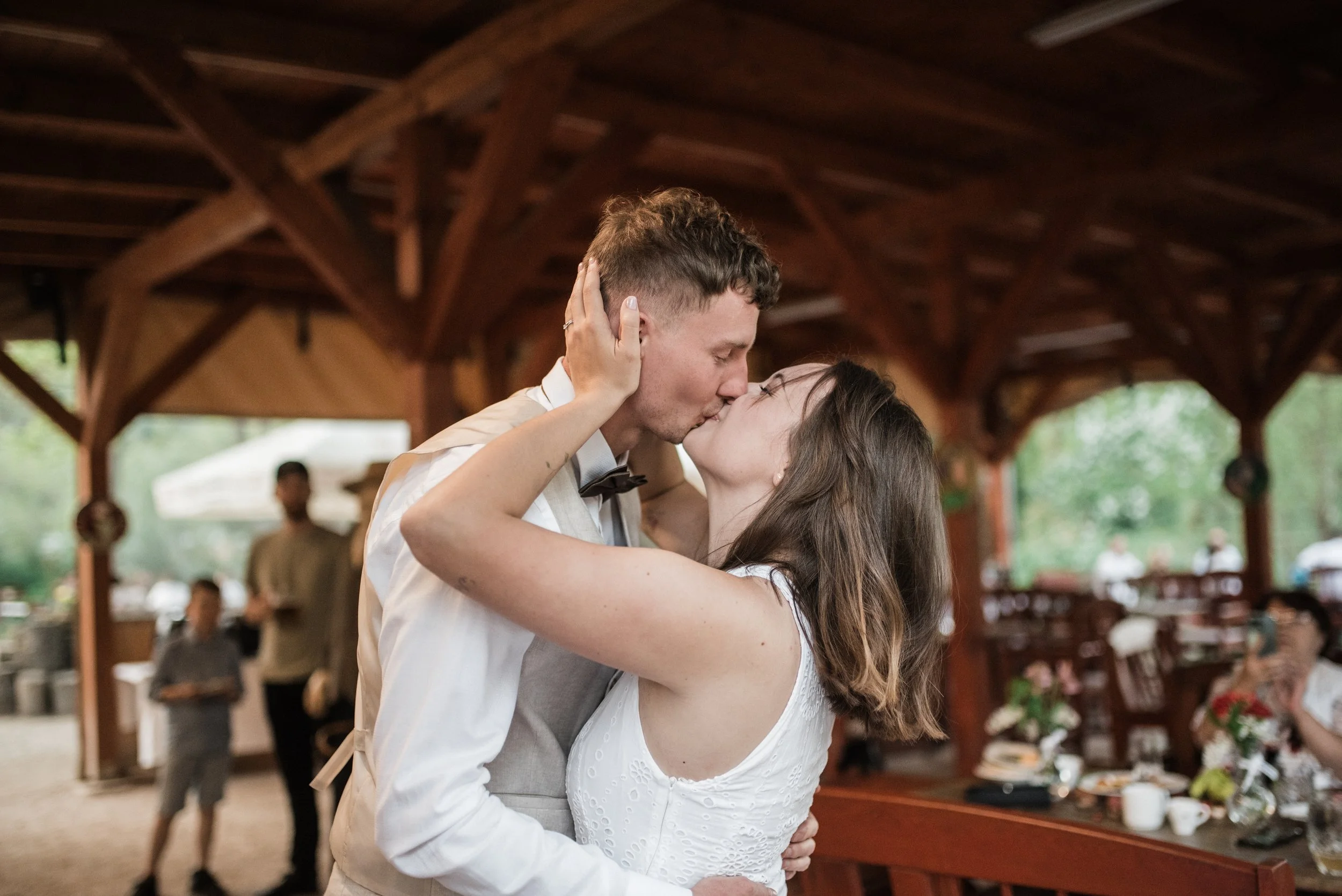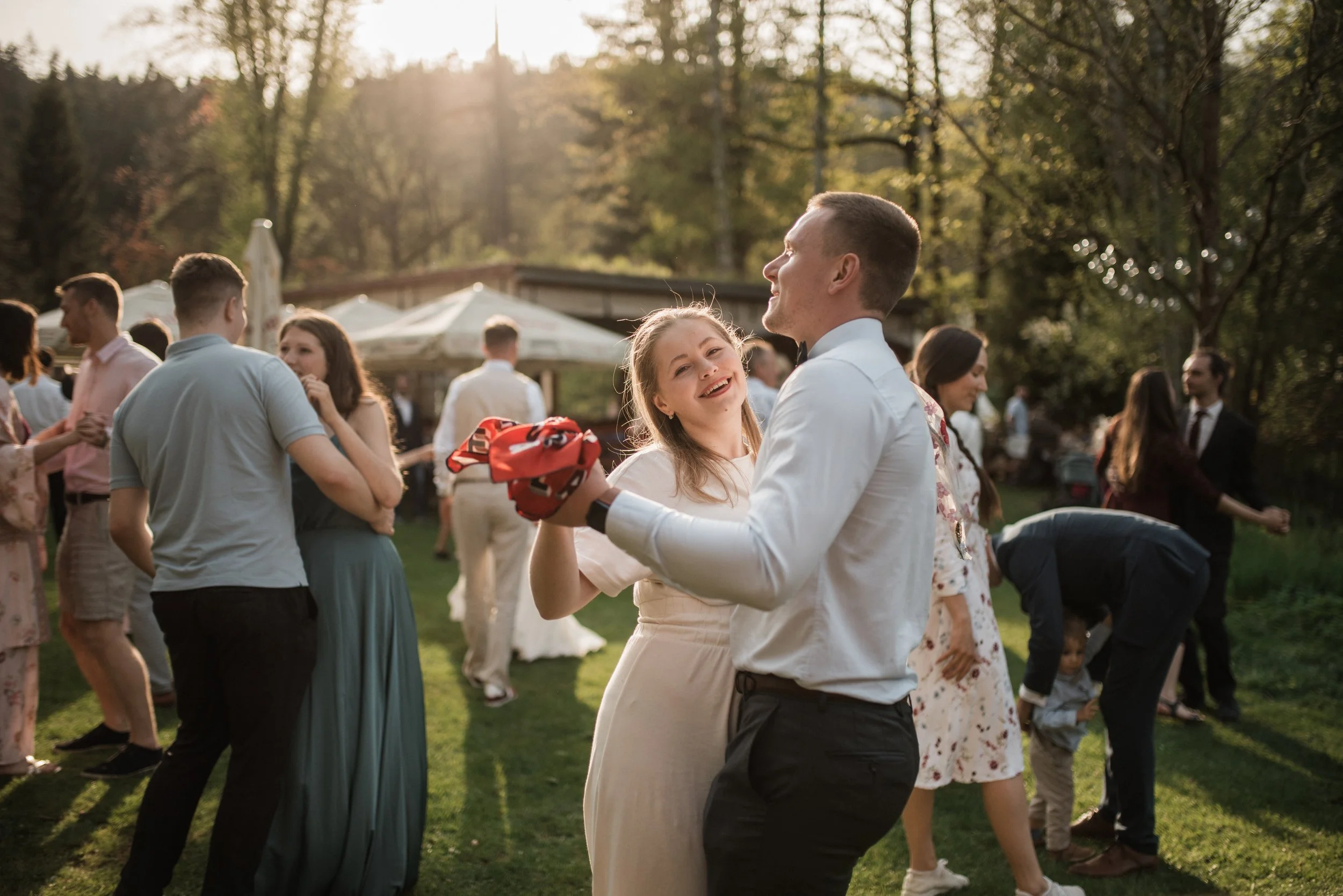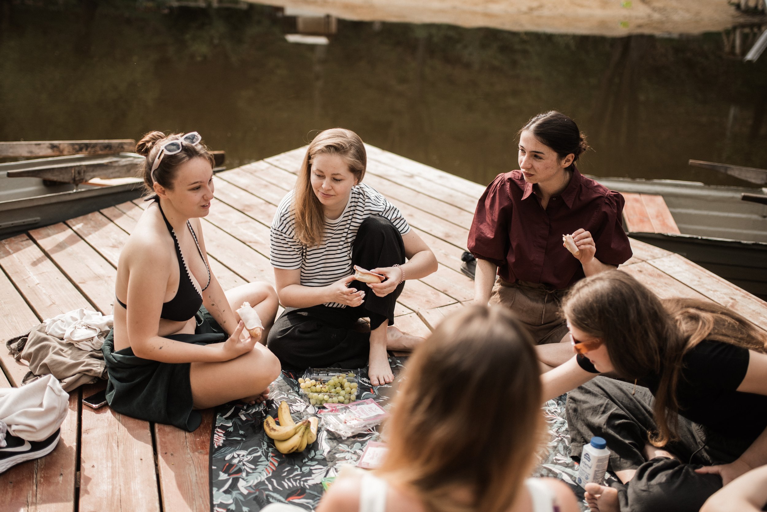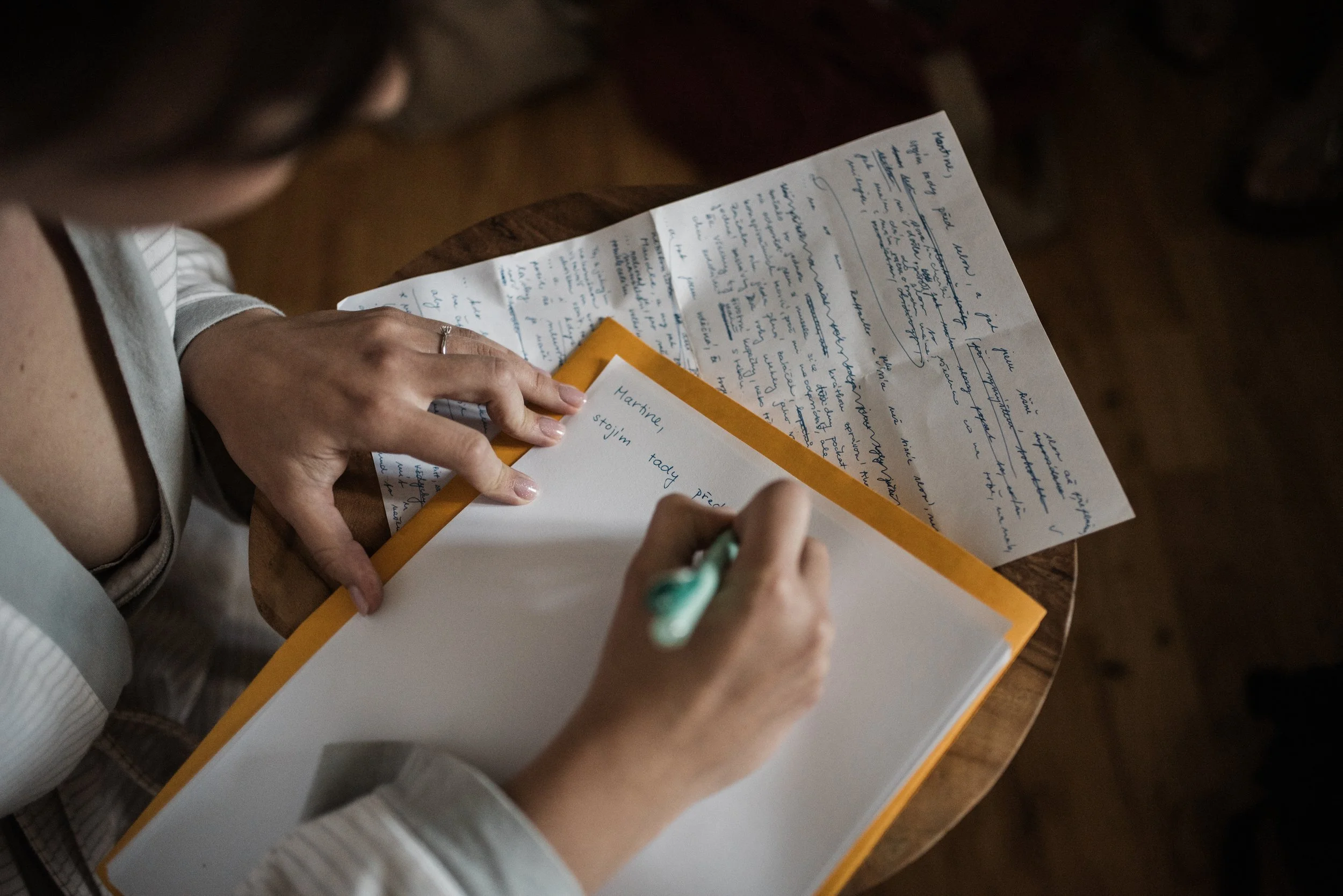 Ranní koupání v jezírku, snídaně na ostrůvku s kamarádkami, svatební rituál, zpěv, slzy štěstí, had, cimbálovka, večerní stříhání vlasů jako překvapení pro ženicha, letní pocity a láska ve vzduchu. Některé svatby se mi uloží hluboko do paměti a do srdce a vzpomínám na ně roky s úsměvem a vděčností a tahle veselka Adél a Martina tam už svoje místo má. Vlastně jsem věděla, že to tak bude hned od prvního mailu, který jsme si s Adél vyměnily. V sobě jsem sice měla malou nervozitu, protože fotit svatbu fotografce je vždycky výzva, tu jsem ale zahodila hned, kdy ke mně Adél ráno přiběhla s úsměvem a místo podání ruky mě pevně obejmula a já věděla, že mám její naprostou důvěru. Někdy v životě prostě potkáte někoho nového, ale srdce má pocit, že se znáte už dávno. Děkuju!