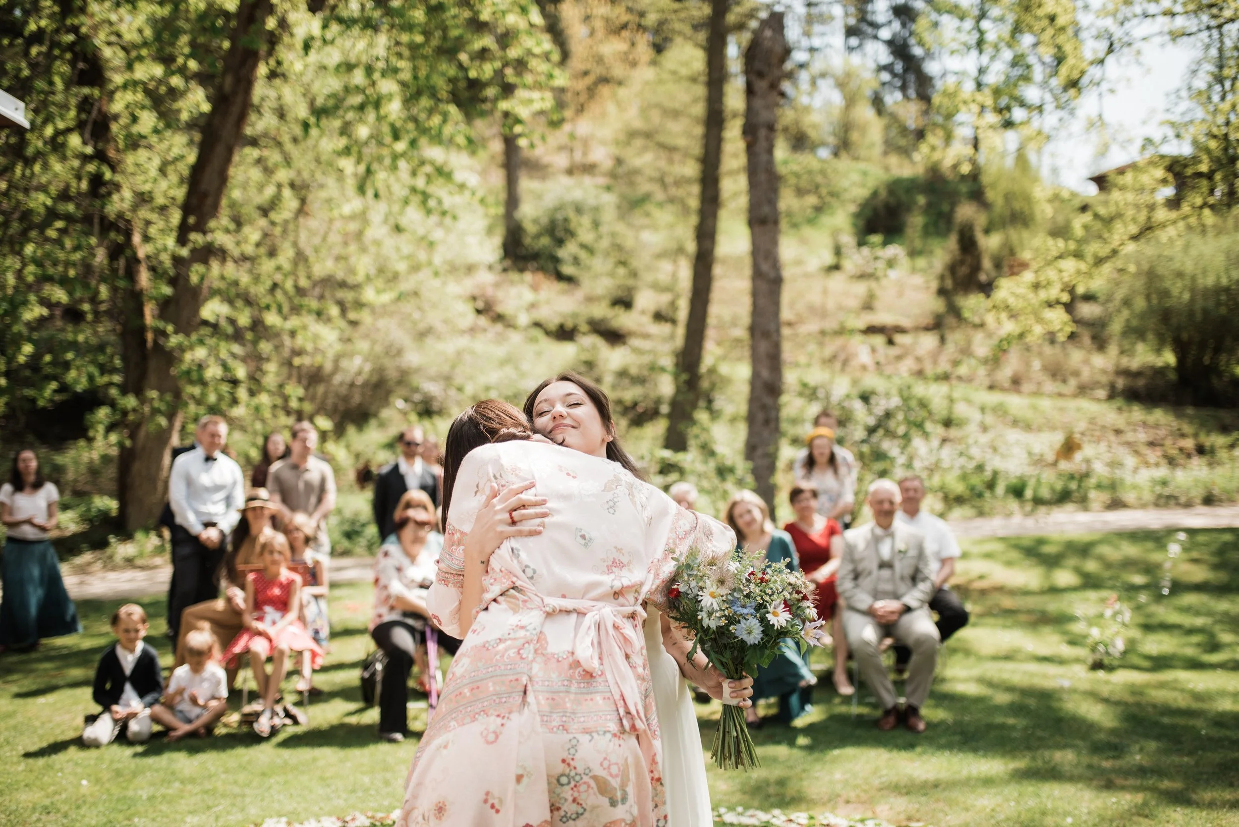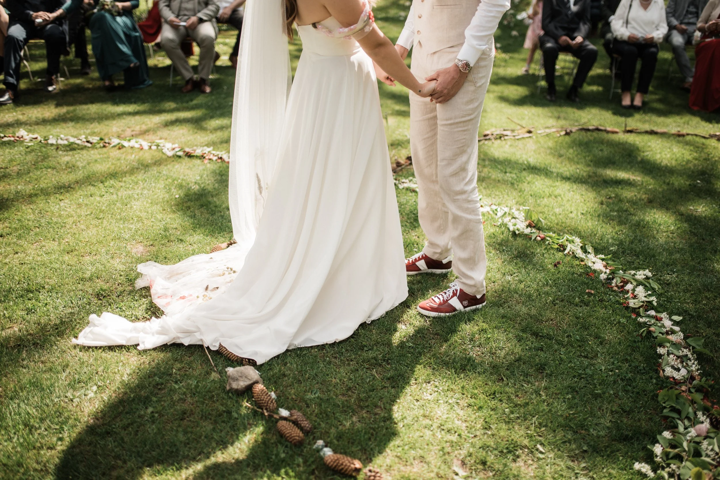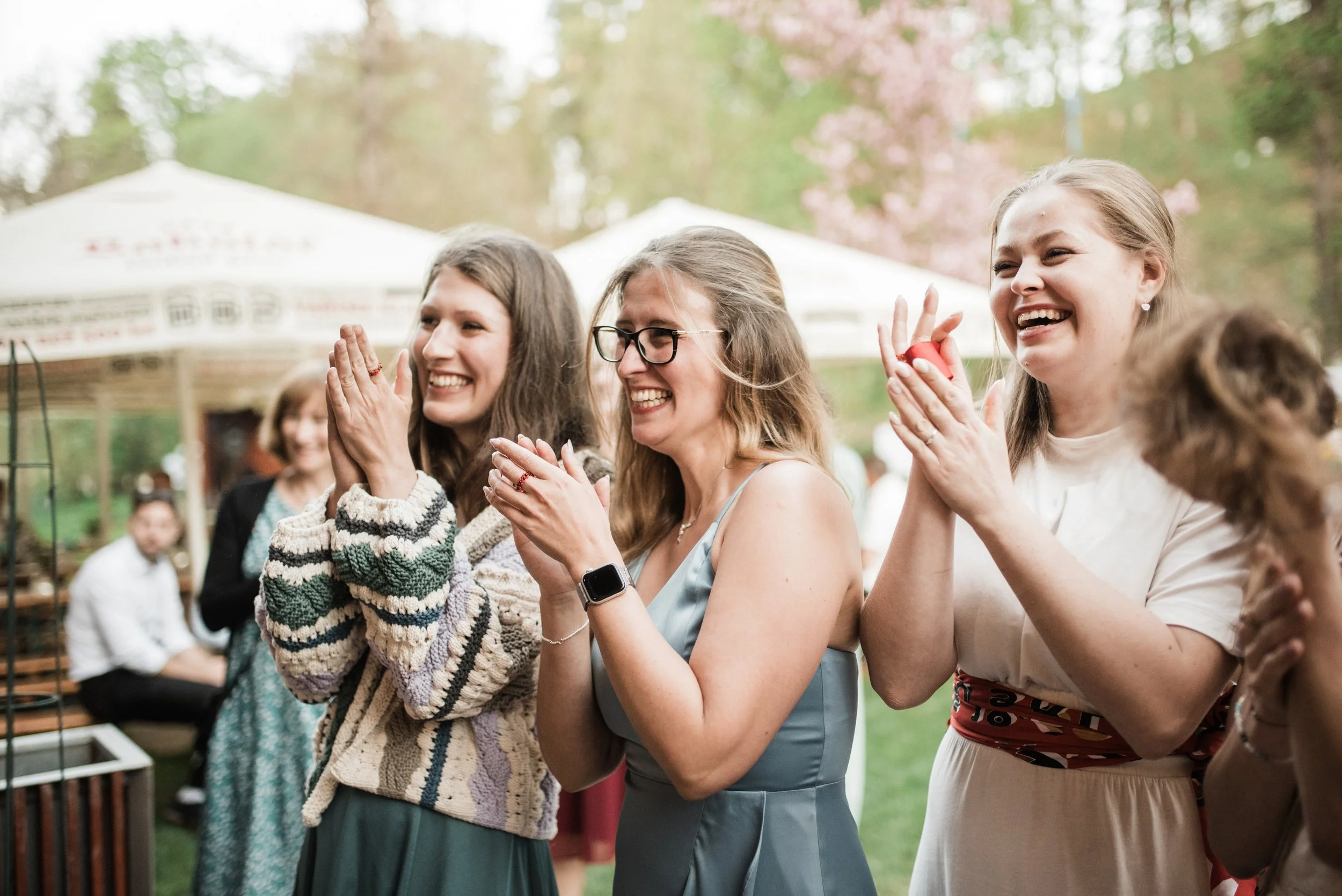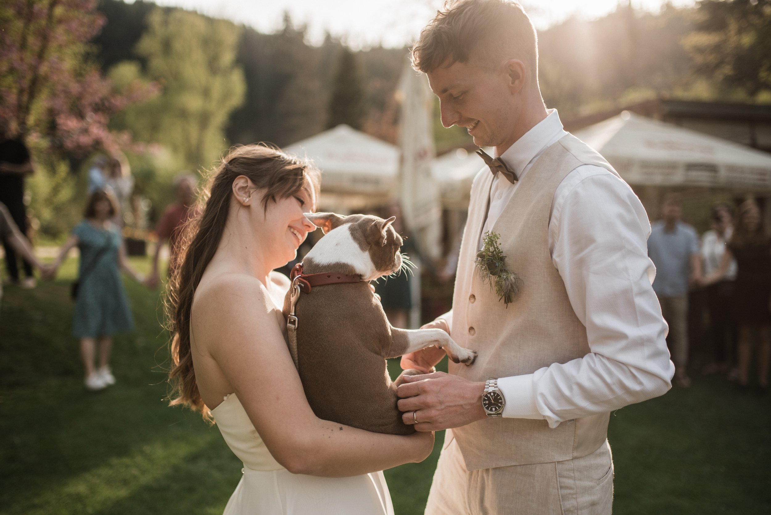Ranní koupání v jezírku, snídaně na ostrůvku s kamarádkami, svatební rituál, zpěv, slzy štěstí, had, cimbálovka, večerní stříhání vlasů jako překvapení pro ženicha, letní pocity a láska ve vzduchu. Některé svatby se mi uloží hluboko do paměti a do srdce a vzpomínám na ně roky s úsměvem a vděčností a tahle veselka Adél a Martina tam už svoje místo má. Vlastně jsem věděla, že to tak bude hned od prvního mailu, který jsme si s Adél vyměnily. V sobě jsem sice měla malou nervozitu, protože fotit svatbu fotografce je vždycky výzva, tu jsem ale zahodila hned, kdy ke mně Adél ráno přiběhla s úsměvem a místo podání ruky mě pevně obejmula a já věděla, že mám její naprostou důvěru. Někdy v životě prostě potkáte někoho nového, ale srdce má pocit, že se znáte už dávno. Děkuju!